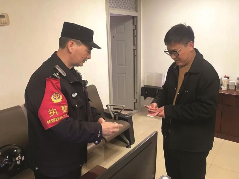 民警很快就通過身份證件迅速聯(lián)系到了韓先生。正在二樓候車室準備上車的韓先生非常吃驚,一摸口袋,才發(fā)現(xiàn)自己的錢包不見了。他來到民警值班室,當面清點核實了遺失物品,激動地表示:“如果等我坐上前往上海的車后才發(fā)現(xiàn)錢包丟失了,那得多著急!太感謝人民警察了!”