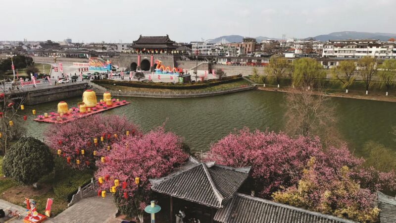 早春時(shí)節(jié),壽縣古城南門(mén)護(hù)城河畔,梅花進(jìn)入最佳觀賞期。紅梅迎風(fēng)綻放,花香四溢,與古老城墻相映成趣,呈現(xiàn)出一派春意盎然的美麗畫(huà)卷,吸引了眾多游客前來(lái)踏春賞花。