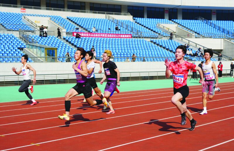 3月14日至15日,由中國田徑協(xié)會、安徽省田徑協(xié)會、市教育體育局指導(dǎo),市田徑運(yùn)動(dòng)協(xié)會主辦的2026中國田徑大眾達(dá)標(biāo)系列賽暨淮南田徑公開賽在淮南奧體中心田徑場開賽,賽事設(shè)10個(gè)組別、95個(gè)單項(xiàng),共有600余名運(yùn)動(dòng)員參賽。圖為U23男子100米比賽場景。