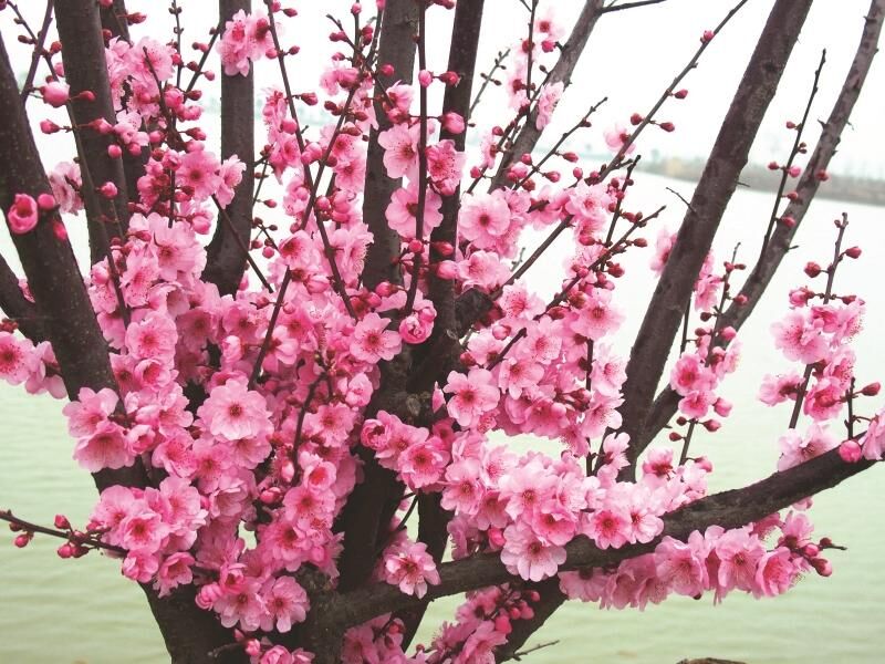 梅花常在凜冬開放,與松、竹并稱“歲寒三友”。而蔡城塘邊的梅花為何此時才開?記者就此咨詢了淮南市花卉園林協(xié)會會長朱煬。朱煬介紹,梅是中國特有的傳統(tǒng)花果,已有3000多年的應用歷史,是深受大眾喜愛的觀賞樹種。其花期在冬春季,開花較早,通常先于葉開放!蔼毺煜露却骸,梅花作為傳春報喜、吉祥如意的象征,從古至今一直被中國人視為吉祥之物,廣受喜愛。眼下油菜花已然盛開,蔡城塘的梅花之所以花期偏遲,主要與其栽植環(huán)境有關。蔡城塘遠離市區(qū),又有大片水面,特別在寒風刺骨的冬季,空曠無遮擋,氣溫明顯偏低,不利于花芽的萌發(fā),直至春和日暖之際才翩然盛開,花期因此偏遲。其實,植物的花期與環(huán)境溫度關系密切。唐代詩人白居易在《大林寺桃花》中便有“人間四月芳菲盡,山寺桃花始盛開”的感喟,說出“山高地深,時節(jié)絕晚”,景物節(jié)候與平地聚落不同,正是相同的道理。