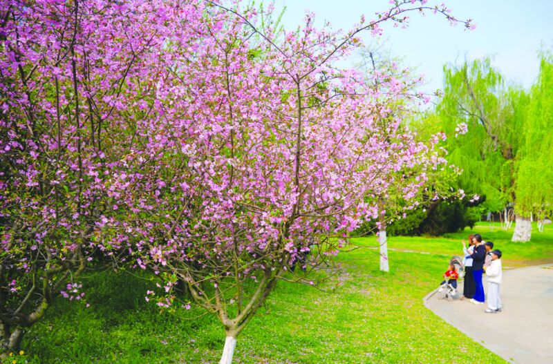 龍湖公園里花紅柳綠。