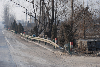 接報(bào)后,記者在第一時(shí)間前往事發(fā)現(xiàn)場(chǎng)進(jìn)行調(diào)查。102省道橫穿壽縣與淮南的交界處,由于該路段兩邊分布著許多大大小小的石料廠及村莊,再加上平時(shí)穿梭于該路段的農(nóng)用車(chē)輛較多,導(dǎo)致該路段存在一定的安全隱患。早在幾年前,有關(guān)部門(mén)為了加強(qiáng)該路段的交通安全,便在路兩邊安裝了交通安全護(hù)欄。但近年來(lái),當(dāng)?shù)匾恍┐迕駷榱俗约旱姆奖,將該路段兩邊所設(shè)置的交通安全護(hù)欄隨意破壞。記者在該路段驅(qū)車(chē)約兩公里,但見(jiàn)路兩邊的交通安全護(hù)欄被破壞的慘不忍睹。記者在現(xiàn)場(chǎng)大致算了一下,遭到破壞的交通安全護(hù)欄在3000米左右。