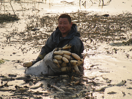 正在洗藕的姚寶村村民姚紅軍告訴記者,2009年較為風(fēng)調(diào)雨順,即使偶有大雨,灣邊設(shè)置的排澇站也能及時(shí)把洪水排出去,所以今年蓮藕收成不錯(cuò)。記者在收獲現(xiàn)場看到,很多村民挖藕都使用上了“挖藕機(jī)”,既提高了挖藕效率又大大節(jié)省了人力。姚紅軍說:使用“挖藕機(jī)”,一天兩個(gè)人能挖出五六百斤蓮藕,輕輕松松幾百元入賬。記者按照村民們提供的批發(fā)價(jià)格計(jì)算,姚紅軍家承包的20多畝蓮藕,今年少說也能賣出3萬元。
