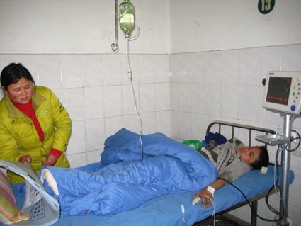 圖四:醫(yī)院病房內(nèi),亮亮正在家人陪護下接受治療。