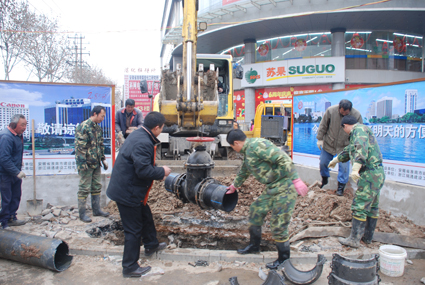 據了解,由于從東華實業(yè)集團公司接收的居民區(qū)的水管都是架空管,且保溫措施比較差,一遇到雨雪等天氣轉冷時候,就會出現(xiàn)管道凍結、爆裂、水表凍壞等現(xiàn)象,據不完全統(tǒng)計,自去年12月份至今,西城分公司接到報修電話2000多個,搶修組每天都要忙到深夜。為了積極應對春節(jié)期間停水等突發(fā)事件,西城分公司在假日期間,每天都有一名廠領導和營銷公司領導坐陣值班,并安排了15人的搶修應急隊伍,及時解決居民用水困擾。