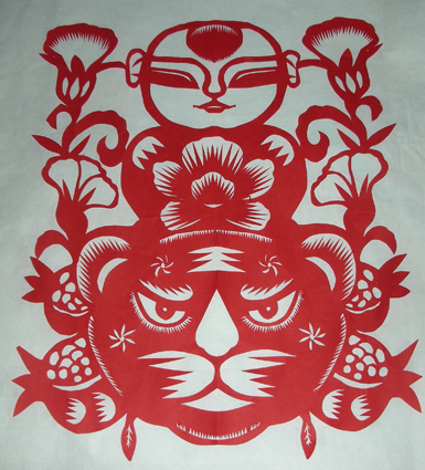 周琴女士平時(shí)的業(yè)余愛好就是剪紙。周女士送給本報(bào)的剪紙作品是她花了三天時(shí)間剪出的一個(gè)“虎娃”,直徑約20厘米,“虎娃”四周分別是五谷和蓮花,寓意虎年五谷豐登,好事連連,“祝!痘春釉鐖(bào)》虎虎生威,祝福報(bào)社全體員工虎年吉祥,更祝大家在虎年里福氣多多!