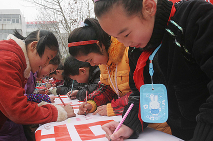 3月1日,新學(xué)期正式開課的第一天,田家庵區(qū)第十六小學(xué)舉行了一場別開生面的“向不良習(xí)慣告別、爭做好少年”簽名活動。經(jīng)過了一個寒假,同學(xué)們又聚到一起,他們踴躍在橫幅上簽名,堅決告別不良習(xí)慣,爭做好少年。圖為簽名現(xiàn)場。