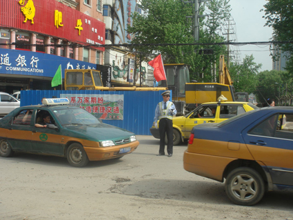 圖一、二:人民北路和香港街交岔口正在施工,交警正在現(xiàn)場(chǎng)執(zhí)勤。