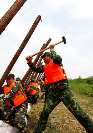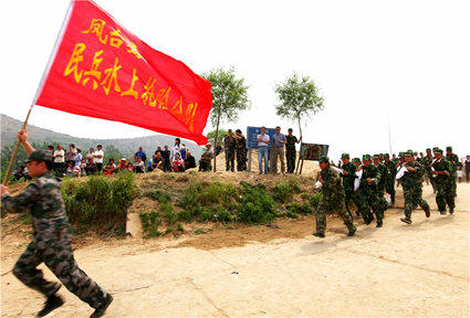 2010年5月12日,安徽淮南防汛搶險水上演練在淮南市鳳臺縣境內(nèi)淮河邊進(jìn)行。當(dāng)日,由淮南軍分區(qū)組織的150名民兵分成水上搶險、抗洪搶險分隊進(jìn)行緊張有序的汛期前演練。