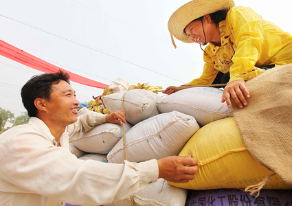 6月24日,大通區(qū)農(nóng)民在大通糧食分局漁場中心糧站喜售豐收糧。預(yù)計(jì),全市小麥平均畝產(chǎn)784斤,總產(chǎn)達(dá)60萬噸,比去年略有增產(chǎn)。今年小麥?zhǔn)召弮r(jià)格又有所提高,從而極大地提高了種糧大戶和農(nóng)民售糧的積極性,出現(xiàn)銷售與收購熱潮。