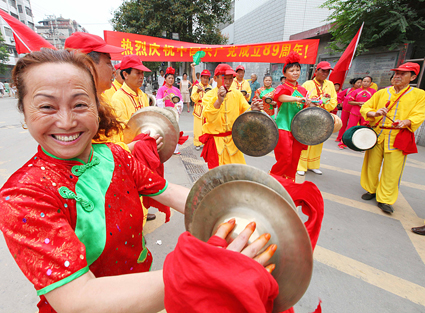 7月1日,謝家集區(qū)鬧市區(qū)一群退休老人打著喜慶的鑼鼓,跳著歡快的舞步喜迎“七一”。他們用這種群眾喜聞樂(lè)見(jiàn)的方式,宣傳黨的方針政策,歌頌黨的豐功偉績(jī),盡情抒發(fā)對(duì)黨的熱愛(ài)和對(duì)美好生活的憧憬。