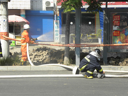 了解到事故發(fā)生的情況后,搶險(xiǎn)人員趕緊將事情上報(bào)公司領(lǐng)導(dǎo),并啟動了緊急預(yù)案,他們首先用緊急隔離帶將這一片隔離,并與公安、消防、建委、安監(jiān)等部門進(jìn)行了聯(lián)系。很快,這些部門人員陸續(xù)趕到,交警部門現(xiàn)場指揮,疏導(dǎo)車輛、行人,并再次用隔離帶將這一片進(jìn)行封鎖,以防車輛、行人發(fā)生意外。消防部門則動用了消防水帶,噴向正四處飄散的泄漏煤氣,以將安全隱患減少到最低點(diǎn),各部門各司其責(zé),分工合作。時(shí)間一分一秒地過去,經(jīng)過3個(gè)多小時(shí)的緊張搶修,煤氣公司搶修人員終于用特殊工具將挖斷的煤氣管道處理完畢。