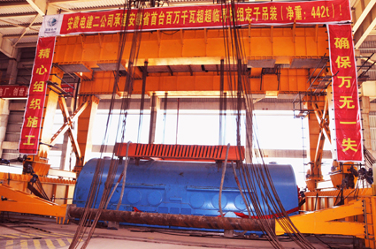 安徽首臺百萬機組的發(fā)電機定子成功就位