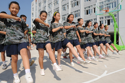 淮南七中在新學(xué)期開學(xué)前對(duì)800名新生進(jìn)行軍訓(xùn),激發(fā)了學(xué)生的愛國熱情,培養(yǎng)了他們堅(jiān)強(qiáng)毅力和集體主義精神,為新學(xué)期開學(xué)形成良好的學(xué)風(fēng)和生活作風(fēng)奠定基礎(chǔ)。圖為8月21日學(xué)生們正在進(jìn)行隊(duì)列訓(xùn)練。
