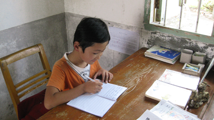 中午放學(xué),趕回家的吳家樂,放下書包就做午飯,然后送到農(nóng)田,外祖母吃完后,他才趕回家,吃留給自己的那份飯菜。然后,他又趕回學(xué)校、維持校園和班級秩序。記者從李想老師口中了解到,平時放學(xué)后,小樂樂就會很自覺地跑到農(nóng)田里幫著干農(nóng)活,起花生、摘棉花、澆水、除草……每天忙下來后,他才有時間打開書,坐在燈下安心學(xué)習(xí)。學(xué)習(xí)刻苦的小樂樂,每次考試成績總能保持第一。