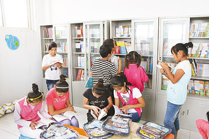 圖為在城北鄉(xiāng)留守流動兒童活動室里,孩子們正在看書。