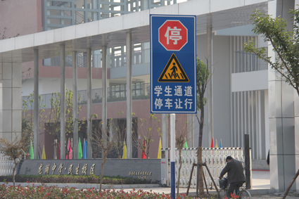 圖:中、小學(xué)門前新設(shè)立的交通警示標(biāo)志