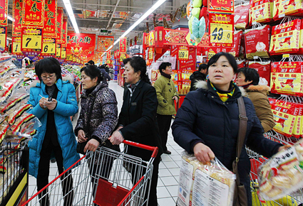 1月20日,市民們?cè)诖笮统袃?nèi)精心選購(gòu)年貨。隨著新春佳節(jié)臨近,我市各大超市用紅燈籠和福字裝飾一新,吃用的商品和禮品一應(yīng)俱全,琳瑯滿(mǎn)目,各種促銷(xiāo)活動(dòng)吸引人們購(gòu)買(mǎi),紅紅火火喜慶迎春節(jié)。