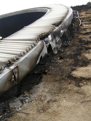 圖一為:洞山隧道北側(cè)的草坪大面積“燒傷”。