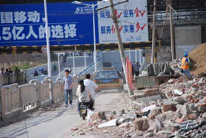 5月23日下午,本報熱線記者在廣場路鐵路立交橋下東邊的人行道觀察了大約半個小時,果然發(fā)現(xiàn)先后有9輛出租車違規(guī)駛?cè)朐撀范螙|邊的人行道上,記者在現(xiàn)場看到,鐵路立交橋下的兩邊人行道寬不足4米,遇到上下班時間,路人通行都顯得有些擁擠。但一些出租車司機為了自己的方便,卻不顧行人的反感,仍隨心所欲將車違規(guī)開上人行道上,并一路按響刺耳的笛聲,快速行駛,與行人爭道。記者看到,每當有出租車從人行道上違規(guī)駛過,人行道上就會揚起大量的灰塵,這些灰塵往往令路人叫苦不迭。一些市民告訴記者,自從該路段改建工程竣工后,人行道上飛馳機動車的現(xiàn)象便存在了。記者在現(xiàn)場攔住了一輛違規(guī)行駛在人行道上的出租車,并質(zhì)問司機:“為何要違規(guī)駛?cè)肴诵械?”司機回答說:“從立交橋下的機動車道要多繞路才能右拐彎,從人行道上走,可以直接右拐,方便!庇浾哂謫枺骸澳悴恢肋@樣的行為是違規(guī)的,而且也威脅路人的安全?”不料出租車司機卻很不在意地回答說,又沒有交警管,考慮那么多干嗎。
