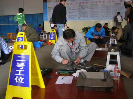 圖為參賽選手正在進(jìn)行鉸磨氣門的比賽。