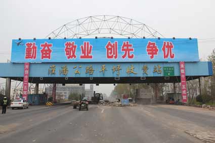 在淮潘公路平圩收費(fèi)站處,記者看到原先設(shè)在這里的站臺(tái)已經(jīng)拆除,一輛挖掘機(jī)正在鏟平地面上的水泥樁,對(duì)道路進(jìn)行后續(xù)清理。據(jù)省淮潘公路建設(shè)開發(fā)有限責(zé)任公司的負(fù)責(zé)人介紹,雖然省政府的正式批文還沒有下來,可接到區(qū)政府的通知后,淮潘公路平圩收費(fèi)站就從5日正式停止了收費(fèi),并抽調(diào)了部分員工配合區(qū)政府成立的臨時(shí)小組對(duì)收費(fèi)站資產(chǎn)進(jìn)行清查。