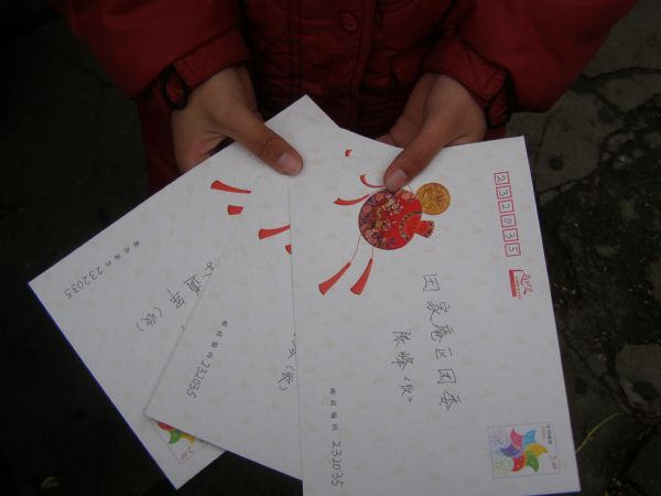 等到梅梅寫好了那一封封新年賀卡,記者一一翻閱信封上這些人的名字:九龍崗派出所的李道軍,淮南市紅十字會的陳玉琴,田家庵區(qū)團(tuán)委的陳峰,九龍崗鎮(zhèn)副鎮(zhèn)長劉慶華、九龍崗鎮(zhèn)民政辦主任周紅……梅梅把這些曾經(jīng)幫助她的人的名字深深記在了心里,正一筆一劃地表達(dá)著自己的心聲。禮輕情意重,賀卡雖小,但卻承載著祖孫倆最誠摯的感激。