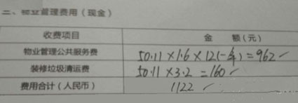 圖:入伙通知單上物業(yè)管理費(fèi)用