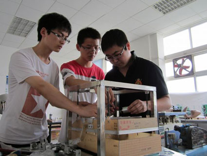 “在科學上沒有平坦的大道,只有不畏勞苦沿著陡峭山路攀登的人,才有希望達到光輝的頂點”。這句話焦忠是最有體會的。2010年,焦忠第一次參加創(chuàng)新設計大賽,比賽前夕,當他和團隊的設計正穩(wěn)步前進的時候,突然發(fā)現(xiàn)局部方案出現(xiàn)了問題,這意味著所有的設計得重新返工,那段時間,他們每天早上6點起床,在機械學院的地下實驗室內(nèi),中午不休息,晚上干到11點,整個設計返工三次,終于完成了。這段日子,焦忠現(xiàn)在說起來還十分感慨。沒有堅持是不會出成績的,2010年,學校成立大學生機器人協(xié)會的時候,和焦忠一批共有近100人參加,到現(xiàn)在只有6個人堅持了下來,這六個人都取得了一定的成績。