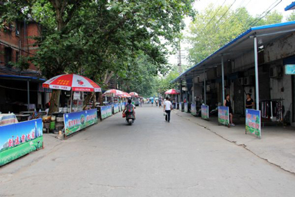 在基地小街內(nèi),記者還發(fā)現(xiàn)原先一些商鋪門前的破舊門頭和亂搭亂建之物也被清理得一干二凈,取而代之的是新豎的統(tǒng)一門頭、寬敞的雨棚,以及遮陽傘。據(jù)經(jīng)營(yíng)戶們稱,這些東西都是城管部門根據(jù)他們所需,主動(dòng)聯(lián)系一些商家免費(fèi)贊助給他們的。在小街最西邊,記者看到原先堆積如山的陳年垃圾已被清理干凈,露出一片寬敞的空地,成了臨時(shí)的停車場(chǎng)地。