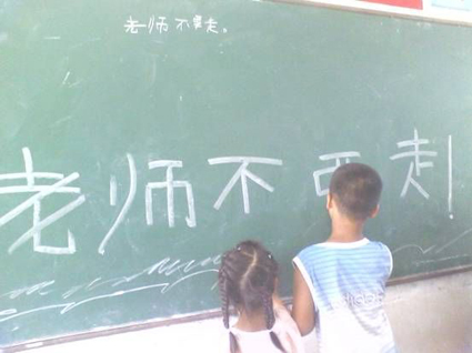 記者走到孩子們中間,他們的面龐黝黑稚嫩,很用心說的普通話難以掩蓋鄉(xiāng)音,寡瘦的手臂在黑板上歪歪斜斜地書寫著“老師不要走!”這幾個稚嫩、簡單的字體正是他們的心聲。一股無形的力量感染著在場的每一個人。
