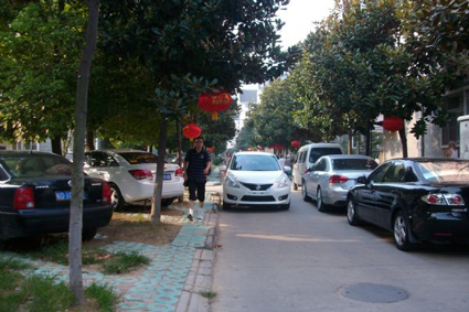 圖:龍眼村小區(qū)停車擁擠,行車行人兩不便。