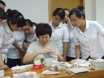 8月5日上午,農(nóng)行淮南分行舉辦了柜員業(yè)務(wù)技能培訓(xùn)。此次培訓(xùn)舉辦8期,歷時(shí)53天,對(duì)全轄240名柜員輪訓(xùn)一次。培訓(xùn)內(nèi)容包括ABIS技能、業(yè)務(wù)知識(shí)、單指單張點(diǎn)鈔、多指多張點(diǎn)鈔、機(jī)器點(diǎn)鈔、規(guī)范化服務(wù)等。是農(nóng)行淮南分行規(guī)模最大、時(shí)間最長(zhǎng)、內(nèi)容最豐富的一次培訓(xùn)。通過(guò)此次培訓(xùn)提高了員工的技能,將更好地服務(wù)客戶(hù)。圖為指導(dǎo)老師在傳授多指多張點(diǎn)鈔技術(shù)。