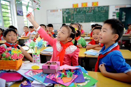 圖一:9月3日,同學(xué)們送的愛心禮物讓陳藝菲很開心。