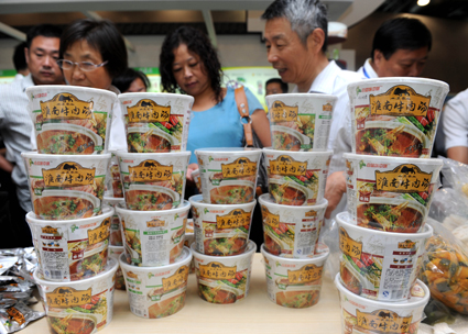 9月7日至9日,主題為“綠色、開(kāi)放、創(chuàng)新、崛起”的2012中國(guó)安徽(合肥)農(nóng)業(yè)產(chǎn)業(yè)化交易會(huì)在安徽國(guó)際會(huì)展中心舉行。我市各縣區(qū)農(nóng)業(yè)部門(mén)精心組織,積極參展,淮南牛肉湯、黃晶梨、酥瓜等一大批特色農(nóng)產(chǎn)品受到省內(nèi)外客商關(guān)注。圖一:獨(dú)具楚風(fēng)漢韻特色的淮南展館人潮熙攘。圖二:白藍(lán)集團(tuán)推出的淮南牛肉湯方便攜帶,吸引在外工作、學(xué)習(xí)的淮南老鄉(xiāng)的搶購(gòu)。