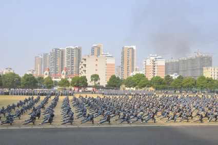 整齊劃一的隊列動作、氣勢昂揚的格斗操、優(yōu)美歡快的韻律操、虎虎生威的軍體拳,激情四射。近日,安徽工貿職業(yè)技術學院舉行2012級新生軍訓閱兵儀式暨總結表彰大會,全院近三千名新生參加閱兵儀式。據了解,作為大學生入學第一課,大一新生進行了為期14天的軍事訓練,系統(tǒng)學習了隊列練習、軍體操、格斗術、韻律操等內容,還開展了國防理論知識講座、內務整理等活動。