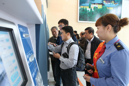 圖一:高鐵正式開通引得八方市民前來體驗。 圖二:自動售票機(jī)前購票,淮南市民欲第一時間來感受高鐵速度。 圖三:寬敞明亮的候車大廳。 圖四:高鐵站內(nèi)一隅。