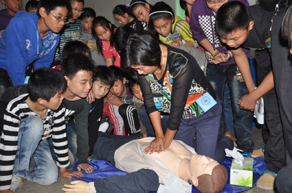 日前,九三學(xué)社淮南市委和市科協(xié)共同組織開展了“百名科普專家基層學(xué)校講科普活動(dòng)”。由淮南市紅十字會(huì)承擔(dān)的“校園安全生命關(guān)天——校園突發(fā)事件意外傷害應(yīng)急救護(hù)”課題,先后走進(jìn)八公山區(qū)、謝家集區(qū)的中小學(xué)校,教授中小學(xué)生如何利用衣服、紅領(lǐng)巾等身邊事物,處理火災(zāi)、地震、溺水、踩踏、觸電、燃?xì)庵卸、交通事故、呼吸道梗阻、運(yùn)動(dòng)損傷等突發(fā)事件和意外傷害現(xiàn)場救護(hù)技能,受到廣大師生的熱烈歡迎。圖為紅十字會(huì)工作人員在為學(xué)生教授救護(hù)技術(shù)。