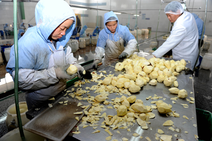 圖三:淮南白藍(lán)集團(tuán)工人加工訂單山芋出口韓國。