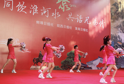 同飲淮河水,共話兄弟情,蚌埠、六安、淮南三家淮河流域城市報(bào)社聯(lián)系密切,已在長(zhǎng)期的交流合作中結(jié)成了兄弟般的友誼,一年一度的記者節(jié)聯(lián)歡活動(dòng)更是進(jìn)一步推動(dòng)了區(qū)域媒體間的發(fā)展與合作。圖為演出現(xiàn)場(chǎng)。