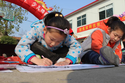 11月17日,在新集鎮(zhèn)舉辦的“慶祝十八大、建設美好鄉(xiāng)村”少兒書畫展上,近百名少年兒童集體作畫?,他們畫得多認真。