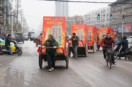 12月2日上午,記者在國慶路與淮舜南路交叉口看到,四輛復(fù)古造型的拖車正在通過十字路口,路過的市民在談?wù)撨@個(gè)商家廣告做得別出心裁的同時(shí),也紛紛表達(dá)了對(duì)道路交通隱患的擔(dān)憂。一位市民告訴記者,他從淮舜南路一直跟著車隊(duì)走過來,本來并不寬闊的淮舜南路被他們這樣一折騰,變得更加擁堵。
