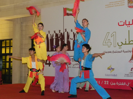 11月29日至12月2日,鳳臺(tái)縣花鼓燈藝術(shù)團(tuán)應(yīng)邀赴阿聯(lián)酋參加該國(guó)41周年國(guó)慶演出活動(dòng),為該國(guó)觀眾奉獻(xiàn)了4場(chǎng)精彩的花鼓燈舞蹈節(jié)目。