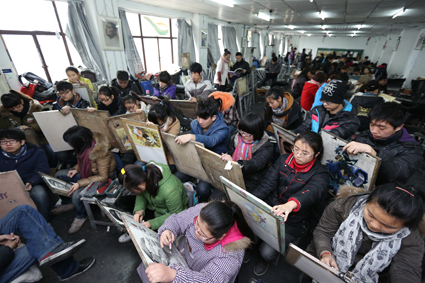12月13日,某美術(shù)學(xué)校里,數(shù)百位美術(shù)類(lèi)高考生正在認(rèn)真畫(huà)完臨考前的最后一張素描作業(yè)。據(jù)了解,明日淮南美術(shù)類(lèi)考生將啟程赴蚌埠安徽財(cái)經(jīng)大學(xué)考點(diǎn)參加“決定命運(yùn)”的2013年普通高校招生美術(shù)類(lèi)專(zhuān)業(yè)統(tǒng)考。