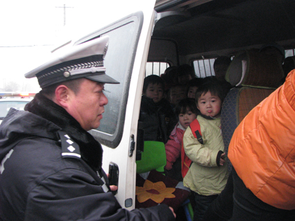 據(jù)了解,當(dāng)天雖然天空飄著雪花,但田家庵二大隊民警絲毫不敢懈怠,下午4時許,正在S310省道黑泥村路段執(zhí)勤的民警發(fā)現(xiàn)附近的一個幼兒園內(nèi)駛出一輛車牌為皖A(yù)75427白色依維柯“校車”,因車體沒有校車標(biāo)識,執(zhí)勤民警立即示意該車靠邊停車檢查。當(dāng)民警上車對車內(nèi)搭載情況進行檢查時,發(fā)現(xiàn)里面塞滿了幼兒,幼兒稚嫩的小臉看著民警,不知道發(fā)生什么事情。民警數(shù)了數(shù)幼兒人數(shù),該車核載11人卻搭載了32名幼兒,超載嚴(yán)重。更讓人吃驚的是,民警對該車進一步檢查時,卻發(fā)現(xiàn)此車套用其它大貨車牌號,而發(fā)動機號顯示竟然是輛報廢車。