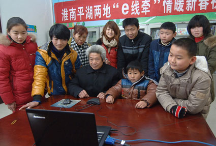 2013年1月1日新年的第一天,淮南市謝家集區(qū)孤堆回族鄉(xiāng)開展淮南平湖“e線牽”情暖新春視頻相見活動,一解留守兒童與在外務(wù)工的父母之間的思念之苦,使在家的孩子心理獲得慰藉,使在外務(wù)工的父母能夠安心工作。