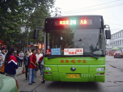 26路:隸屬于淮南中北巴士公司的客運(yùn)三車隊,在每天的早晨和中午分別增派2臺26路車作為高峰車,將原本運(yùn)行至八公山區(qū)政府的26路公交車延伸至山王。