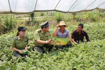 圖:執(zhí)法人員走到田間地頭為瓜農(nóng)送上“西瓜地圖”