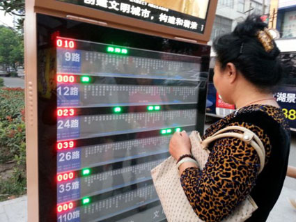 國慶期間,主城區(qū)7條主干道上部分電子公交站牌顯功能