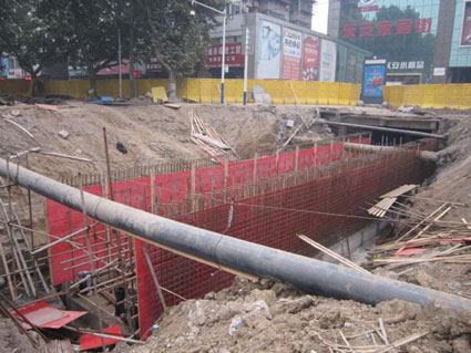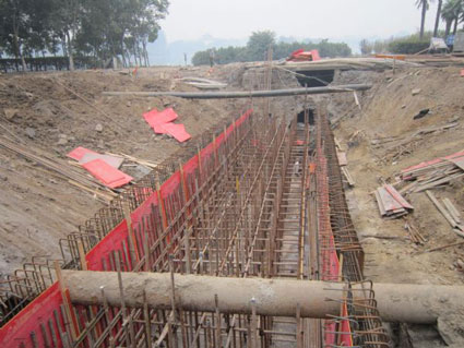 圖一二為人民北路箱涵擴建工程施工現(xiàn)場。